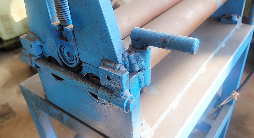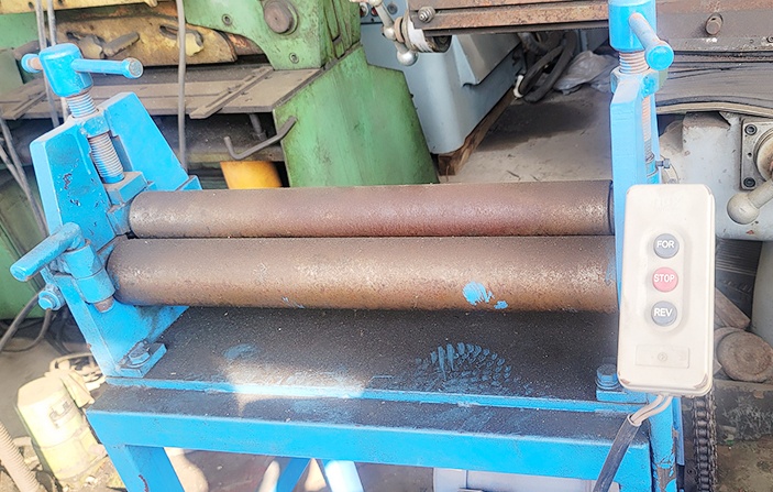 금속의 판을 원통으로 성형하는 롤링기계는 여러가지 종류가 있으며 그중 포스팅하는 #3단롤링머신 은 2~4단계까지 의 롤러중 저렴한 설계로되어 있어 비용적인 면으로 가장많이 사용하는 디자인 입니다 해당기계는 #신품급3단롤링기 로서 설치가 깔끔한 염가의 #중고3단로라머신 입니다 밑에는 2개롤 윗부분에는 1개롤이 있어 그사이로 판을 넣어위로 빠져나오면서 자연스럽게 구부러지기 때문에 복잡한 형태로 사용하지 않아 작업하는데 어려움이 없습니다