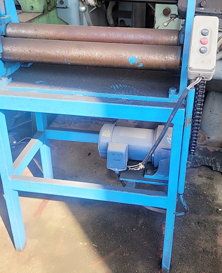 하부에는 모터가 안쪽에 고정되어 있어 기계밖으로 튀어 나와 있지 않아 깔끔한 공간설치와 함께 모터보호가 될 수 있으며 기계적인 동력으로 인해 구부리거나 펴는데 이용합니다 3개의 금속롤, 모터 체인 3p스위치 테이블로 간단하게 구성되어 있으며 다루기 쉬운 경제적인 중고기계입니다 88.33.88.88.