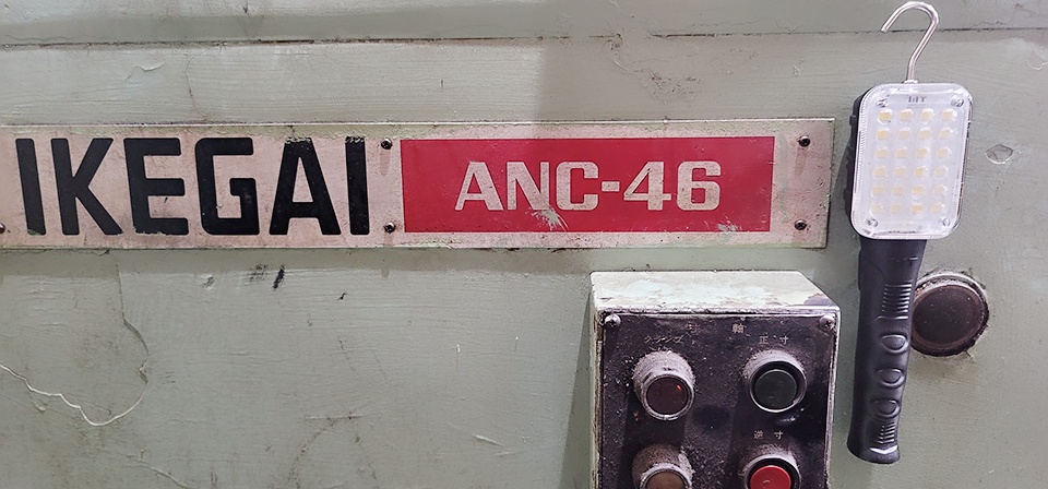 해당기계는 일제 이케가이 사의 ANC-46 model 입니다 대형CNC 920 5m의 선반이며 대형의금속가공물 절삭에 이용합니다 컴퓨터수치제어 입력방식으로 정확도가 높으며 항공우주부품이나 철도 등의 대형의 부품을 사용하는곳에서 선반과 같은 공작기계를 통해 제작합니다 보통선반과 같이 베드와 주축대 심압대 왕복대를 포함하여 자동공구교환장치와 cnc제어시스템 등으로 구성되어 있습니다 대형의 기계는 가공시 발생하는 진동을 최소화 하여 작업하기 때문에 강성이 높아야 합니다