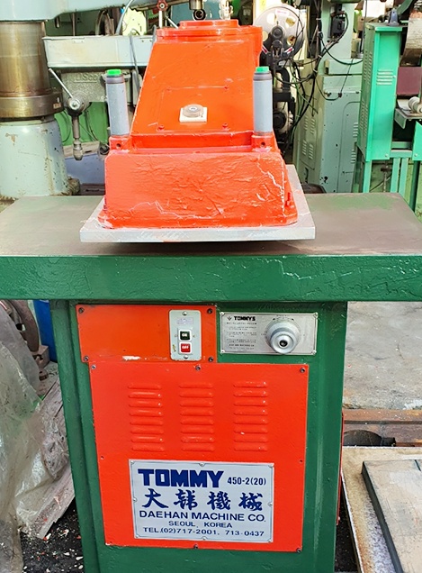가죽에서 신발,벨트 도안이나 마스크팩시트 스폰지 등 다양한 소재들을 원하는 형태로 절단하는 #톰슨프레스 는 목적에 따라 여러가지 형태로 나누어지며 이번에 포스팅하는 #클리커프레스 는 반자동 방식으로 손잡이를 활용하여 프레스의 방향을 좌우로 움직이며 원하는 재료를 테이블에 두어 모양에 맞는 다이를 둔뒤 프레스작업을 하여 절단 하는 방식으로 #유압식프레스 를 이용하여 20톤의 강력한 힘을 발휘해 질긴 재료도 쉽게 자르는데 사용합니다