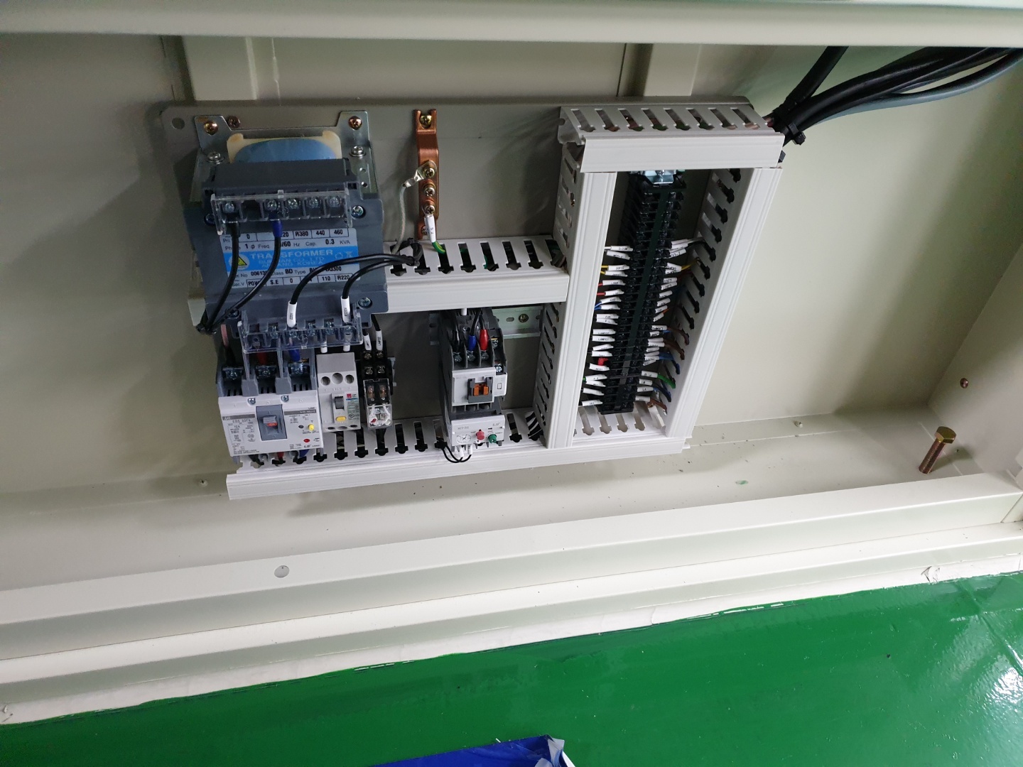 긴 통로 형태로서 현장이나 외부 불이 켜지면 내부의 에어샤워기는 따로 불을 켤일 없이 내부가 잘 보이도록 되어 있습니다