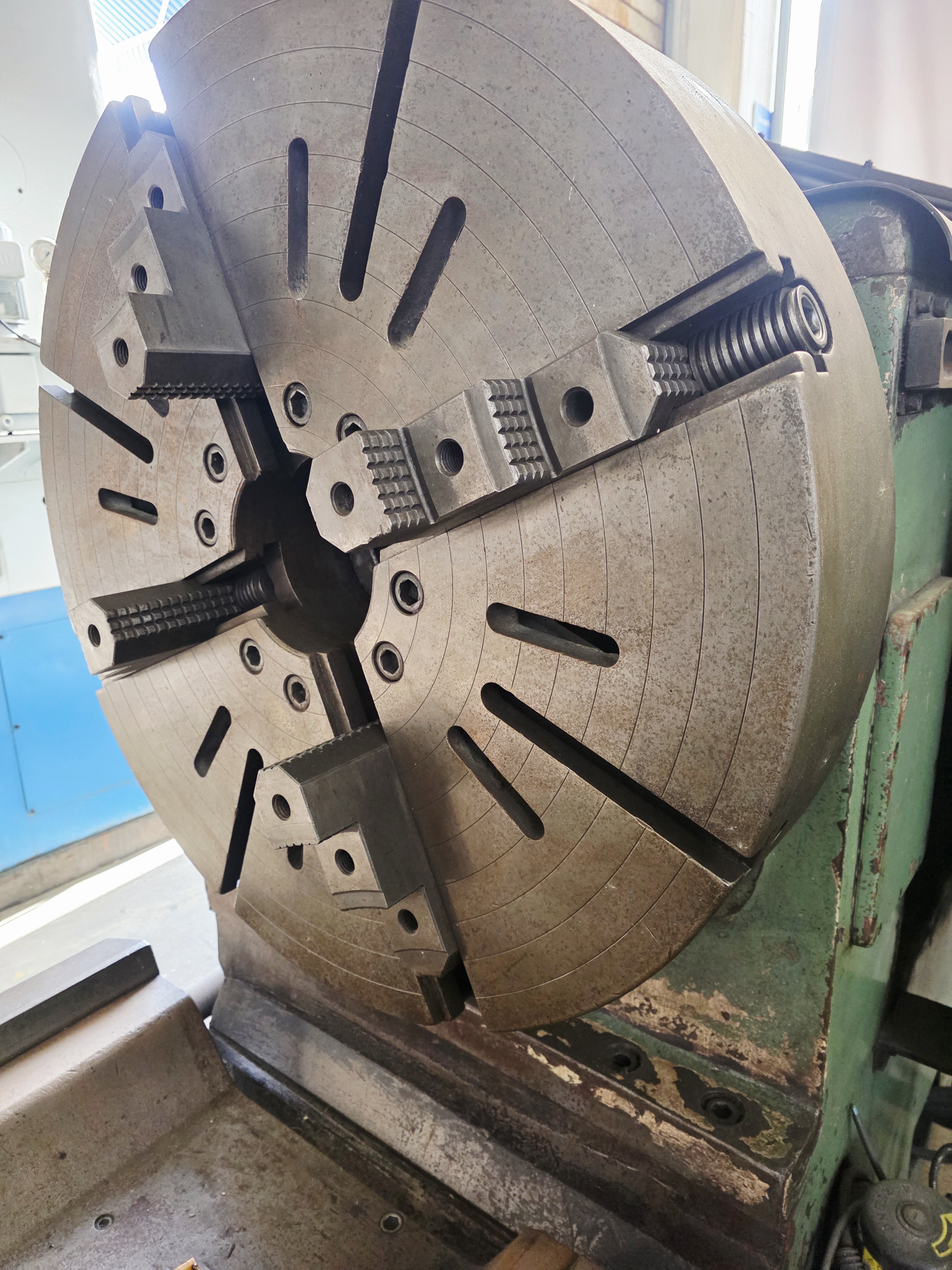 대형 샤프트 및 비정형 공작물 가공의 필수품인 4조 독립척입니다. 각 조가 독립적으로 움직여 정밀하게 중심을 잡을 수 있으며, 척의 조임 부위 상태가 양호하여 고토크 가공 작업에서도 소재가 흔들리지 않도록 강력하고 안정적인 파지력을 제공합니다.