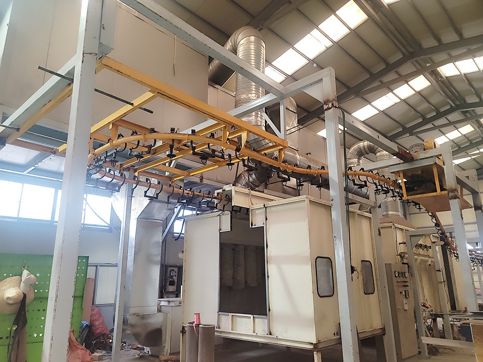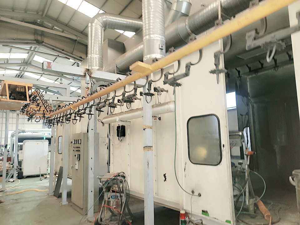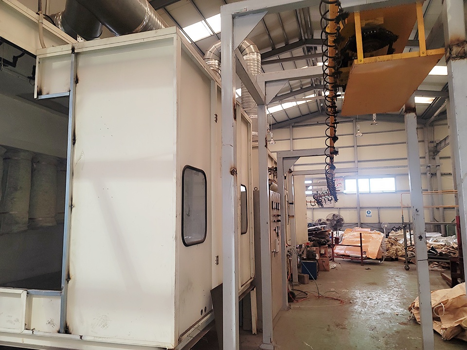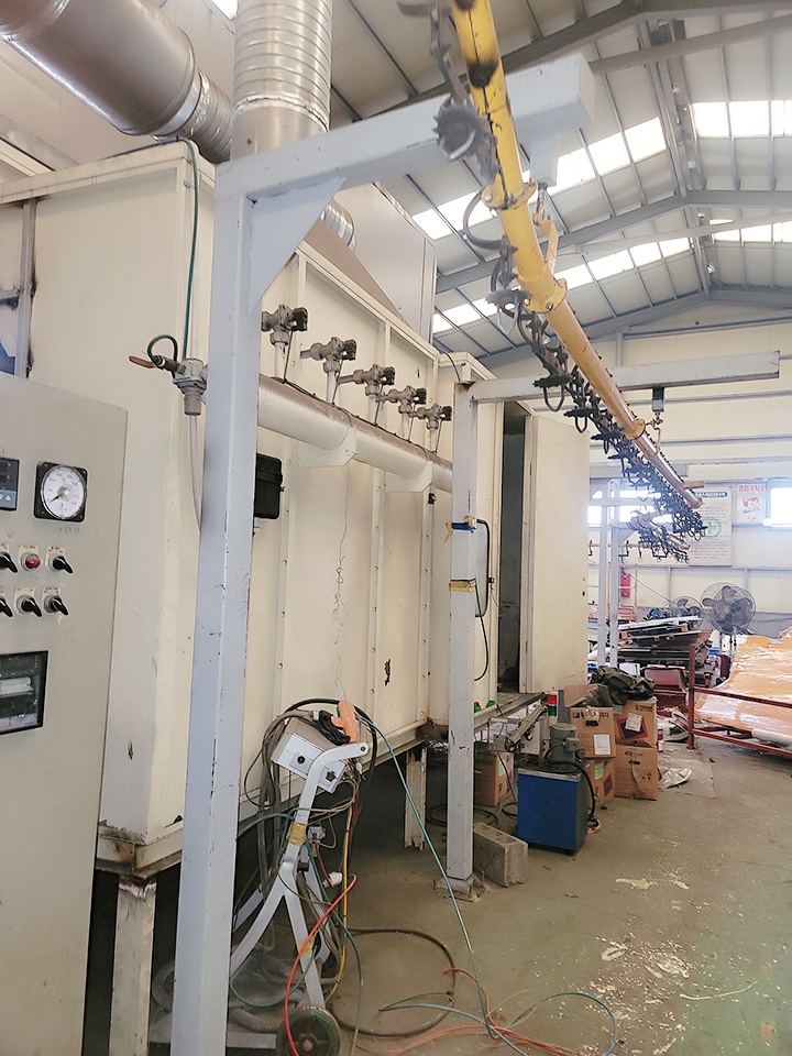 분체도장라인작업으로 금속부품의 표면을 단단하게 하여 오래도록 사용할 수 있도록 하는 도장라인기계입니다